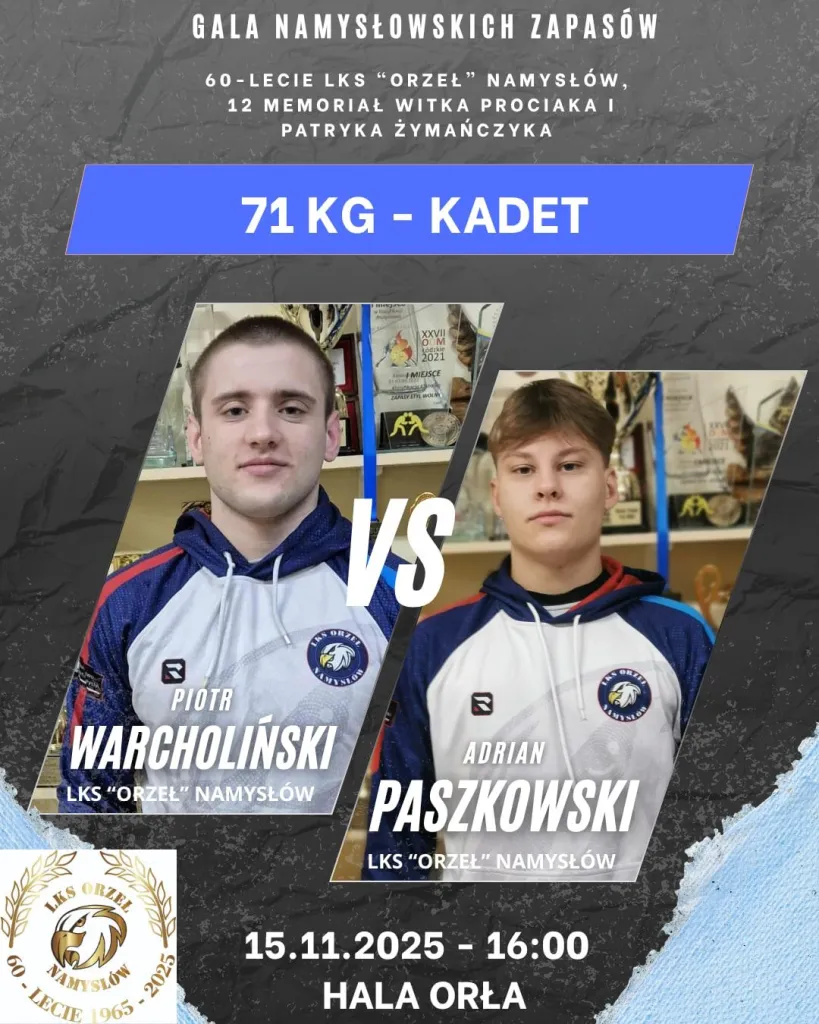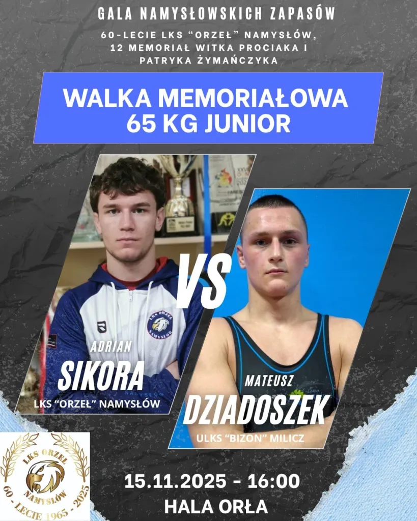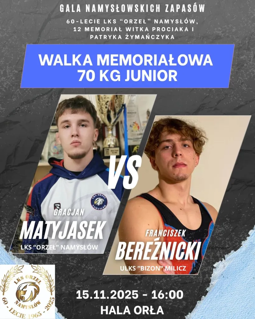 W nadchodzący weekend 15 listopada 2025 w Hali Orła na ul. Kolejowej 1 w Namysłowie zostanie rozegrany XXII memoriał ku pamięci Witka Prociaka i Patryka Żymańczyka, dwóch zawodników ORŁA Namysłów.