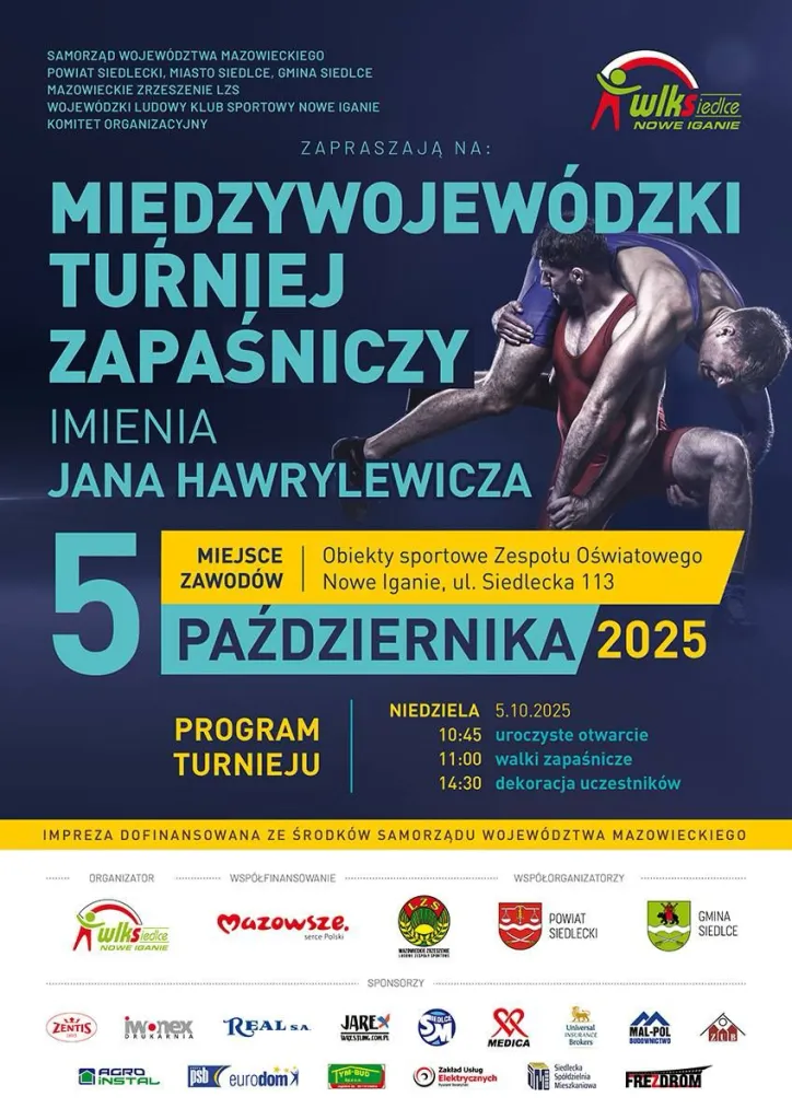 W dniu od 5 października 2025 r. na obiektach sportowych Zespołu Oświatowego Nowe Iganie ul. Siedlecka 113 rozegrany zostanie turniej zapaśniczy dla dzieci w stylu wolnym i zapasach kobiet.
