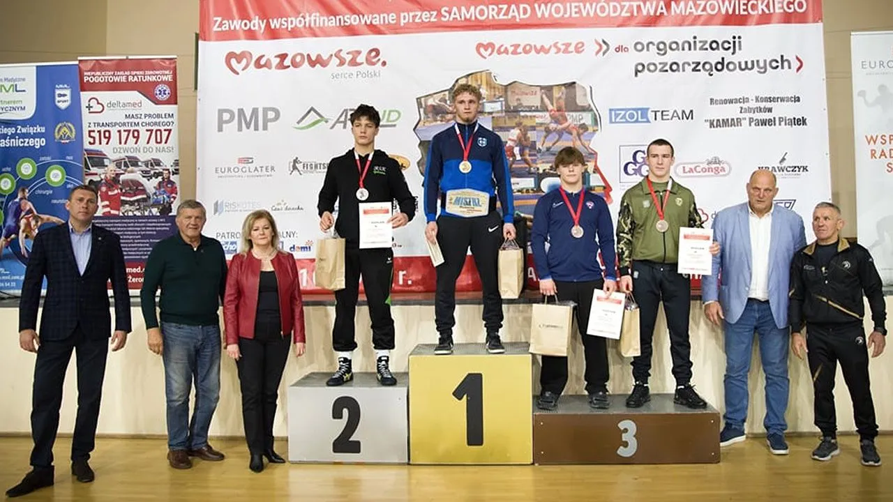 II miejsce Jakub Skrzypczak zawodnik Stowarzyszenie Akademia Zapasów Nowy Tomyśl