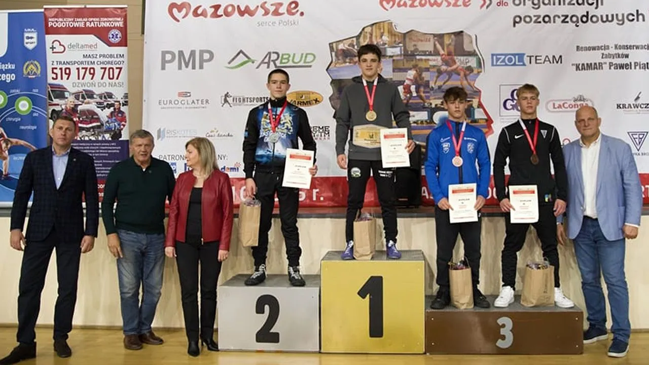 III miejsce Mate Kukuladze zawodnik Stowarzyszenie Akademia Zapasów Nowy Tomyśl